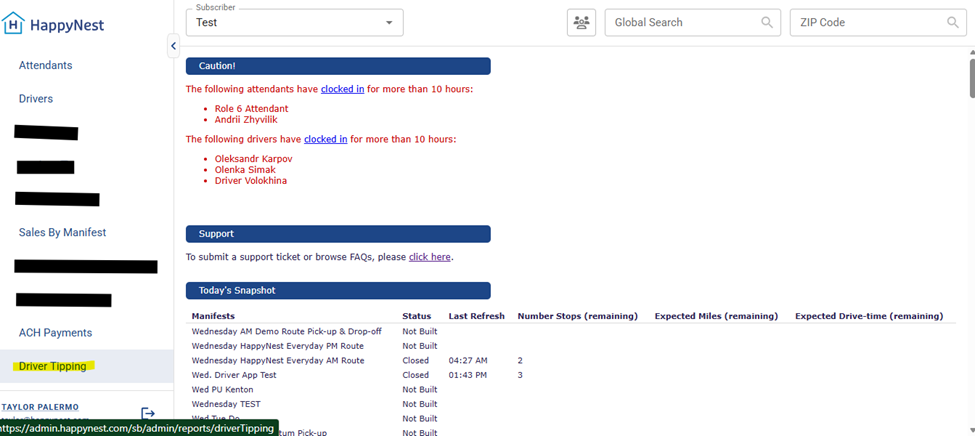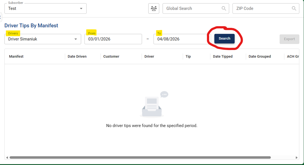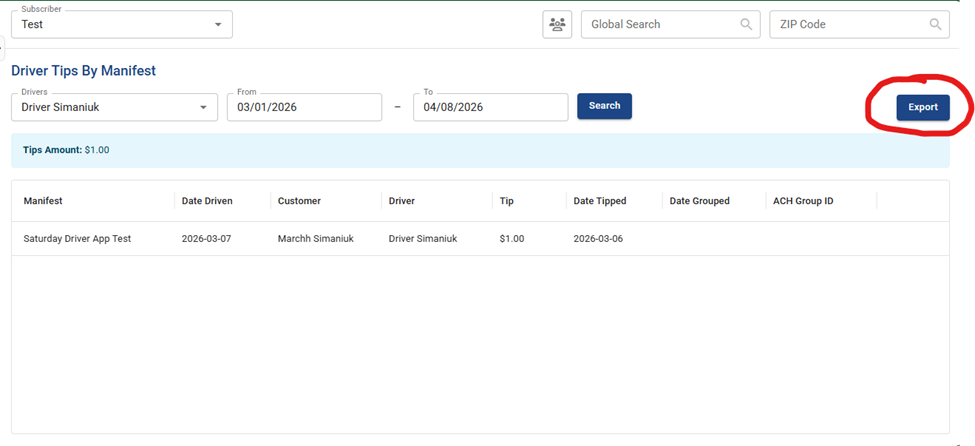 - Click “Driver Tips By Manifest”