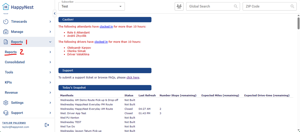 - On the left sidebar scroll down to and click on “Reports” then “Reports” again underneath the first one.