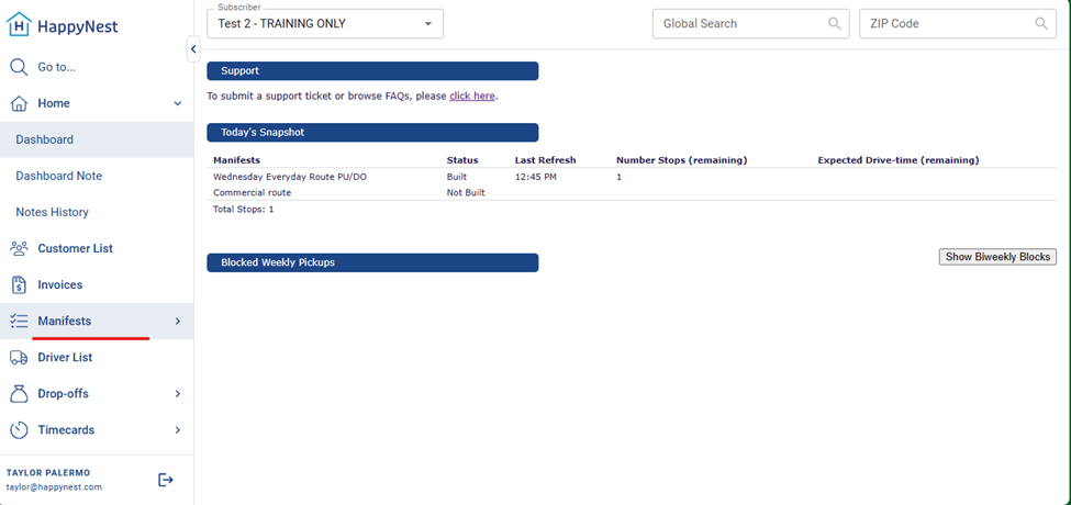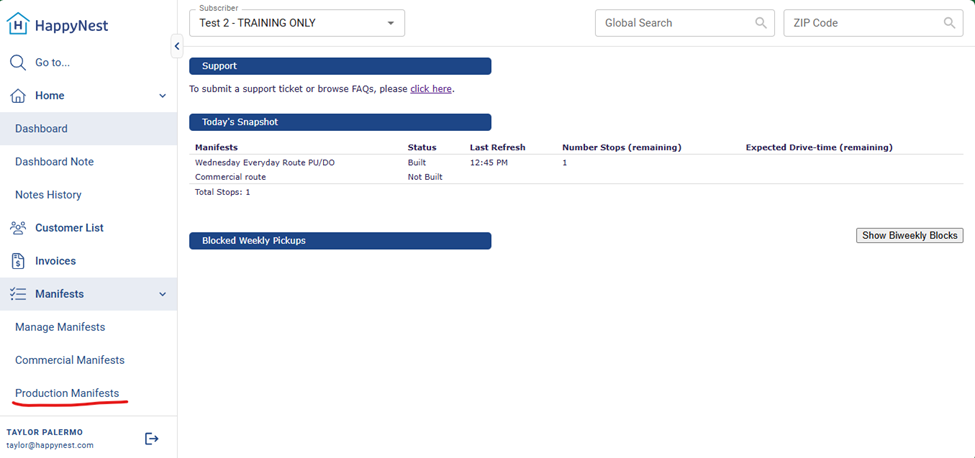 - You can then go back to the tab you were in previously that shows, “Full Manifest”. Please make sure to weigh the bag(s) every time. Even if the customers are, “per bag” we still need to track the weight for: first time customers who don’t have our HappyNest bags yet, to track how much weight your facility is getting to map your growth within the company and to track any missing items cases should they arise.